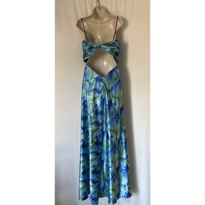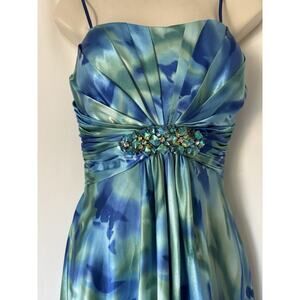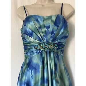 Cashe Dress 10 Maxi Long Gown Blue Green Floral Beaded Formal Evening Gorgeous
