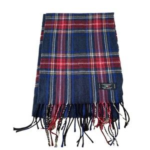 Cashme Plaid Scarf 60" x 11" Multicolored Fringe Made In Italy Acrylic