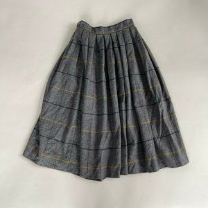 Cashmere A line Full Wool Skirt Vintage Plaid Pleated Grey Size XS Fit and flare
