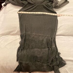 Cashmere Angora Blend Scandal gray sweater dress silk frayed ombré color sz M/L