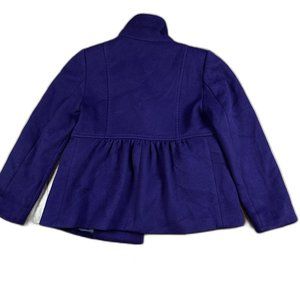 Short plum color coat featuring a stand-up collar, a double-buttoned closure, two invisible side pockets, long sleeves, flared fit, shoulder pads. Composition: 100% cashmere
