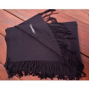 Cashmere Black Wrap Blanket Scarf Shawl with Fringe 27" x 71"