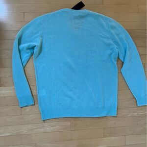 Cashmere Boutique Pure Cashmere V-Neck Spring Sweater in Blue Topaz M NWT