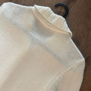 Absolutely beautiful and soft, long sweater. This would work for a person with a smaller frame.