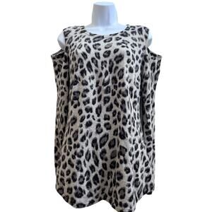 Cashmere Charter Club Luxury Leopard Print Cold Shoulder Knit Top Size Large