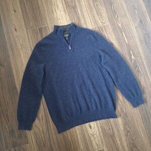 💙 Cashmere Club Room Quarter Zip Sweater Preppy Blue Size L 100% Cashmere