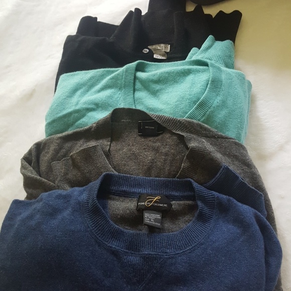 4 long sleeved cashmere sweaters. $20 for all 4. Teal, Blue, Grey and Black