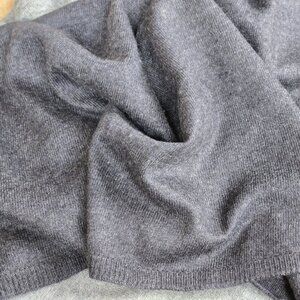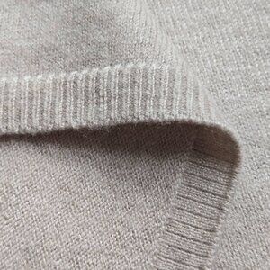 No tags at all on this perfect scarf. Feels like a cashmere/cotton blend--very soft. No flaws, no pet hair, no odors. Neutral colors go with everything.