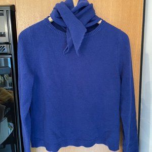royal blue high quality cashmere sweater with tie neck, attached at the back and free in front to tie in many different ways