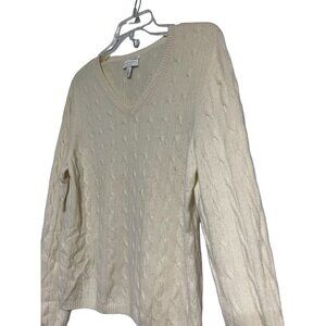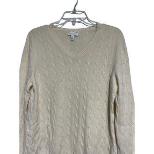 Cashmere Petite Women's Sweater Pullover V-Neck Cable Knit Tan Size PL