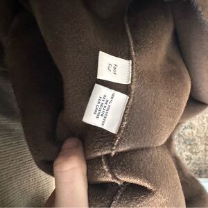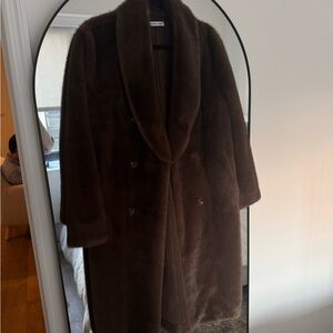 brown double-breasted faux fur coat. It’s really really warm. It’s missing one button but I have the replacement!