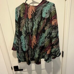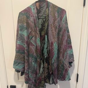 This vibrant cape features a stunning multicolor design, perfect for adding a pop of color to your wardrobe. Its unique pattern makes it a standout piece for any occasion.