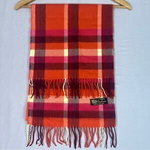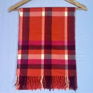 Cashmere Scarf Fringed Plaid Orange Red Made England Fall Winter Cozy Soft
