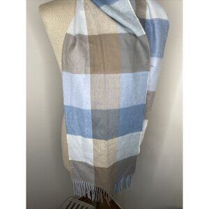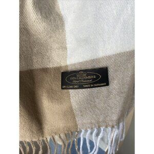 Cashmere Scarf Made in Germany Blue Grey Tan Plaid Fringe Wrap