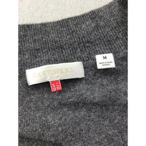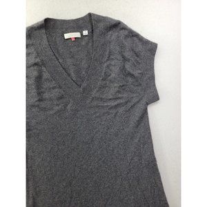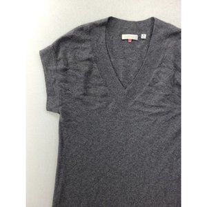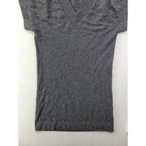 Cashmere Sweater Dress Women's Medium Gray Luxury Knit V-Neck Short Sleeve