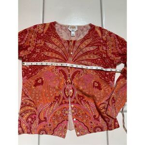 Talbots Vintage Pure Cashmere Cardigan Sweater. Size M ~ one owner ~ Multi color and Pearl Flat Buttons