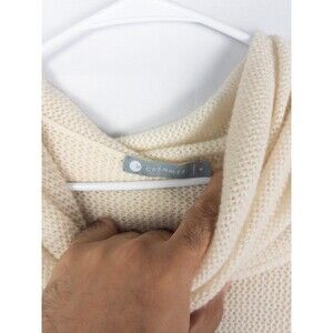 Cashmere Sweater Womens Medium Pullover Ivory Knit Roll Neck Long Sleeve