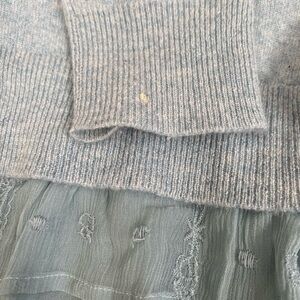 Stylish sea foam green sweater featuring a ruffle hem. Perfect for layering.