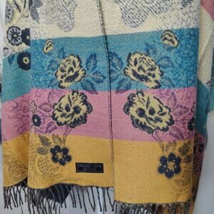 Cashmere Touch really pretty floral scarf, shawl, or wrap in thick soft fabric. Grey on one side, colorblock on the other with pink, yellow and blue.