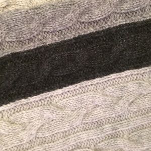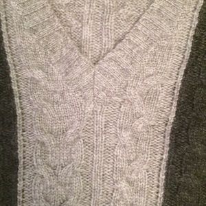 Luxurious Color blocked V-neck cable knit sweater in shades of black, medium and light gray. Long sleeves. Dry clean only. NWOT -New without tags. 🚚 MOVING SALE - PRICES SLASHED 🚚