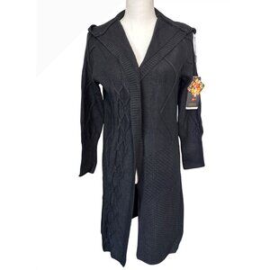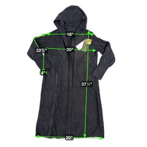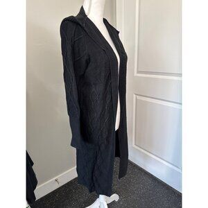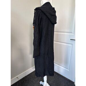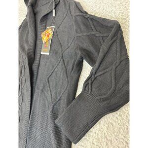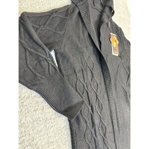 Cashmere Womens Long Black Cardigan Sweater Hoodie W/Cable Knit Pattern Soft