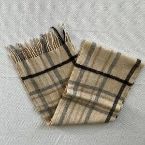Cashmere by Charter Club 100% Cashmere Scarf Neutral Plaid w fringe 9 x 50
