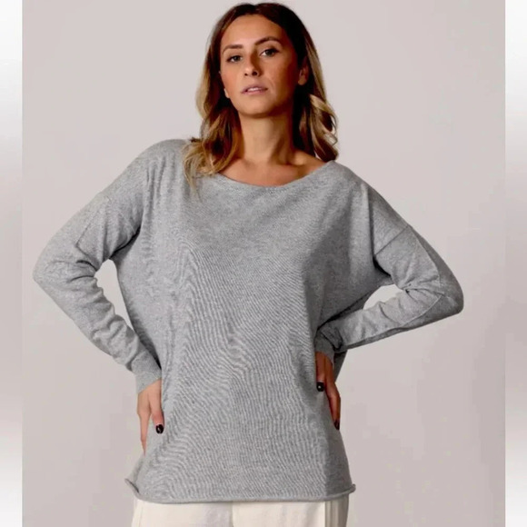 Cashmere silk blend cardigan sweater back buttons made in Italy neutral sweater
