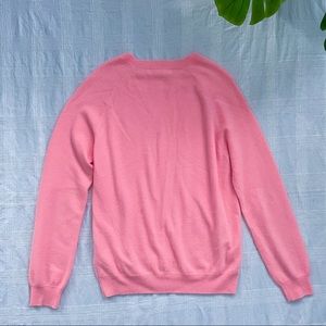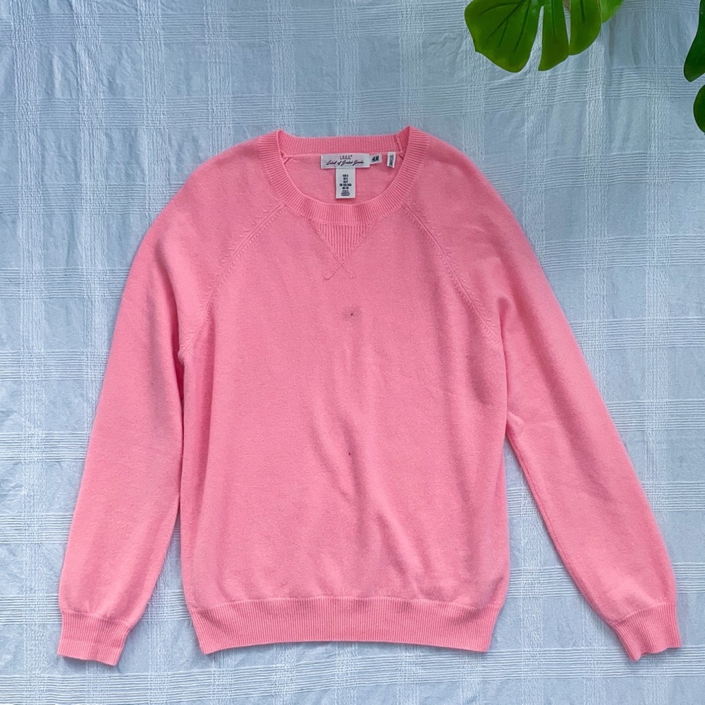 Cashmere-blend sweater in a very vibrant pink for everyday use. I’ve only worn it a couple times, so it doesn’t have noticeable signs of wear, stains, or tears. The fabric is very soft! It’s 50% cashmere and 50% wool