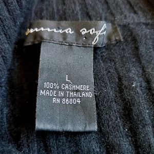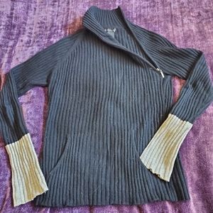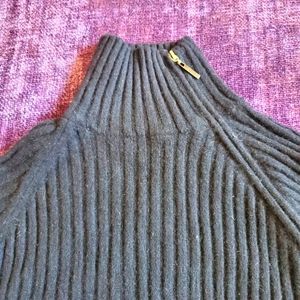 Unusual zip up cashmere sweater converts to turtleneck or unzips for a sexy look. Black with grey ends on sleeves and front pockets. Ribbed cashmere design this is a rare find 😋