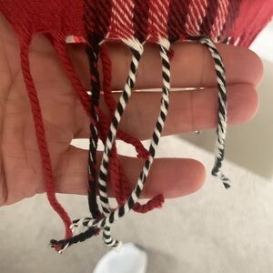 Cashmere winter scarf red black and white plaid with braided fringe