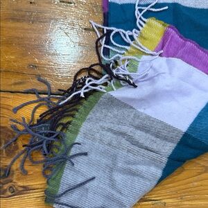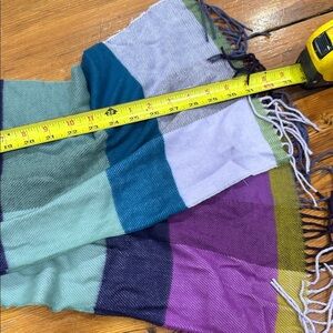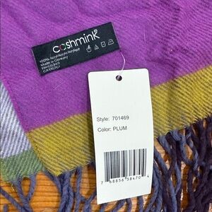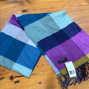 Cashmink Purple and Green Plaid Scarf with Fringe NWT