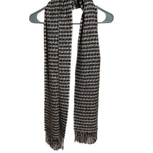 Cashmink- Unisex Black and White Houndstooth Scarf with Fringe Detail, OS