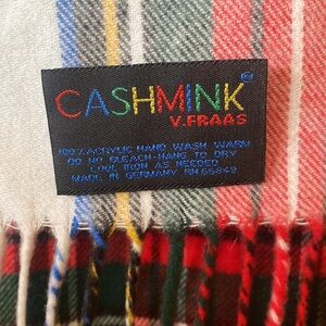 Cashmink V. Grass Plaid Scarf in very good condition. Tag is peeling off slightly as pictured. 100% acrylic. Approximately 14 by 64 inches.