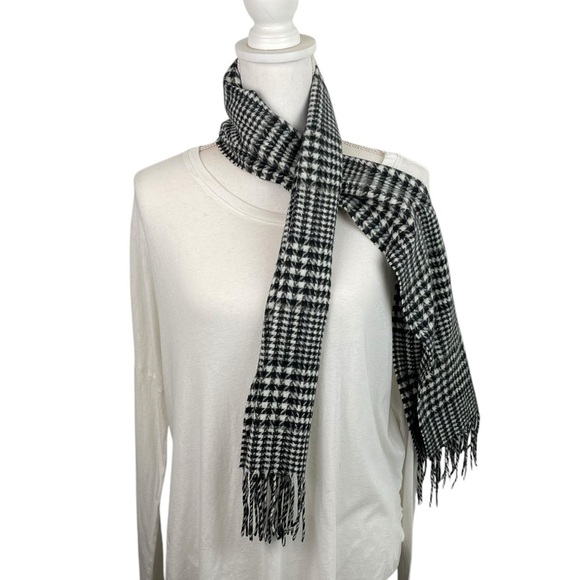 Cashmink by V. Fraas | Black White Herringbone Fringe Neck Scarf