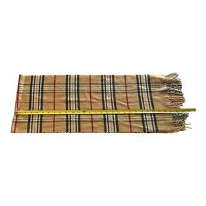 Cashmink by V Fraas Scarf Tan Black Plaid Scarf Fringe Soft Unisex 54 x 11.