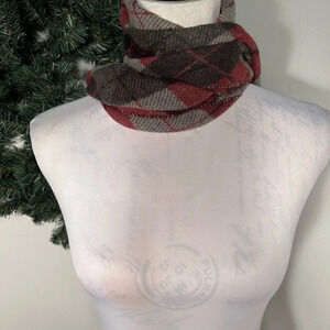 Cashmink by V.FRAAS, Burgundy & Gray undertone argyle pattern scarf w/fringe end