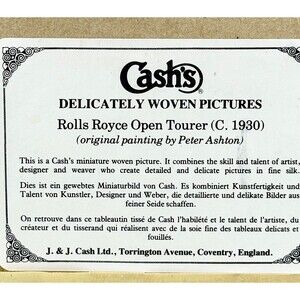 This beautiful woven picture by Cash's of Coventry features a classic Rolls Royce Open Tourer, painted with intricate details of silk fabric. Excellent, pre-loved condition. There are no visible signs of chips, cracks, breaks, or repairs. Edges are smooth & has a glossy and clean surface. Please inspect pictures carefully as they are also a part of the description. Colors in photos may vary slightly due to lighting. All dimensions are approximate. Bundle and save on shipping!! Reasonable offers will be considered!! Smoke & Pet Free home. I reduce, reuse and recycle shipping materials and ship Monday-Friday