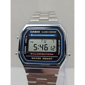 Casio 3298 A168 Illuminator Alarm Chrono Watch Steel Band New Battery Retro