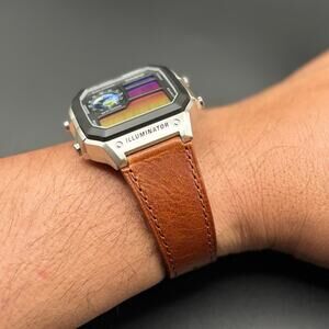 Hand-modded Casio AE1200WH World Time with a warm sunset look and a comfortable leather upgrade. I installed layered gel light filters that fade from amber to magenta for a sunset style display and added a globe decal for a travel vibe. The stock resin strap has been replaced with a genuine leather strap; I will include the original strap, extra spring bars, and a swap tool so you can change it back if you prefer.