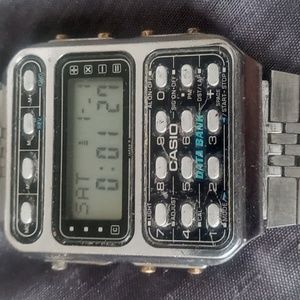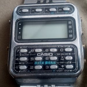 vintage Casio data bank. took out battery and checked for corrosion. UPDATE: just put in a battery and watch does power up did not check functions but I would bet they work. looks to be in good shape. sold as is no refunds check pictures for details of watch