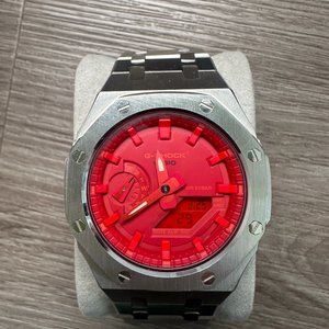 I purchased this watch from Amazon, also picked up its mod- no longer sold the AP ROYAL OAK body-bracelet for it in stainless steel. I have the extra links it comes with, and also still have the brand new un used un worn red plastic straps from the watch.