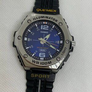 Casio Illuminator MW620H men watch Heavy Duty 100m Water Resistant black silver tone 48mm quartz analog Resin Band , in good condition face has some scratches , works good battery installed