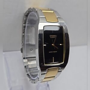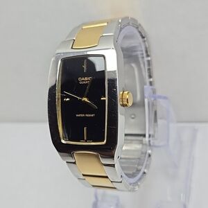 Casio MTP 1165 Womens Watch Gold Silver Tone Black Dial Quartz New Battery Works