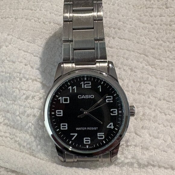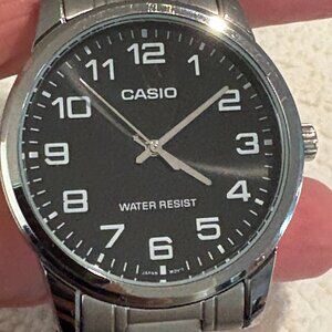 Casio TP-V001D-Men's Standard Stainless Steel Easy Reader Black Dial Watch Mint