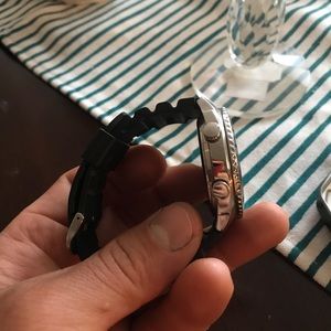 Very sleek and elegant looking. I stop using it when battery died. Needs new batteries other than that works perfectly fine. Waterproof up 50 meters under water. Digital and analog.. Retails for $120
