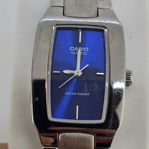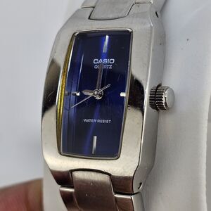 Casio Women's Watch 21MM Blue Dial Gray Case Gray Bracelet Band 6" New Battery