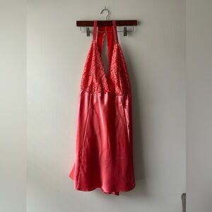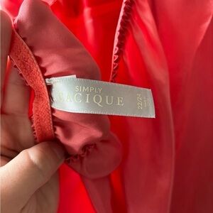 Good conditions Cacique orange slip. No stains, or bad odor. Does have a minor flaw on the back (Please see pictures). HAs floral lace detail on the boost area. V-neck cut. Stretchy on the waist. Silky like fabric. Perfect for spring and summer. Please see pictures for more details.