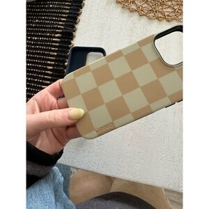 Casley tan and white checkered phone case bundle 15 pro max