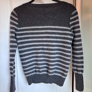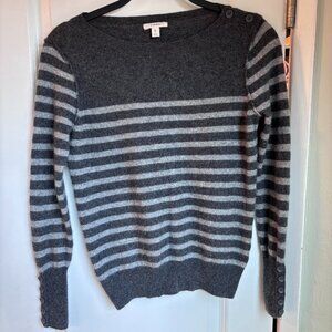 Caslon 100% Cashmere Striped Sweater • Gray/Charcoal • Button Detail • MP