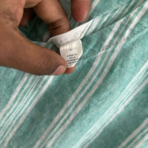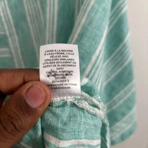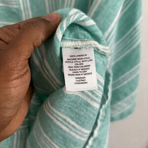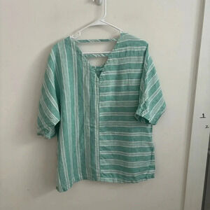Caslon 100% Linen Green/ White Striped Cut Out Back Short Sleeve Blouse L